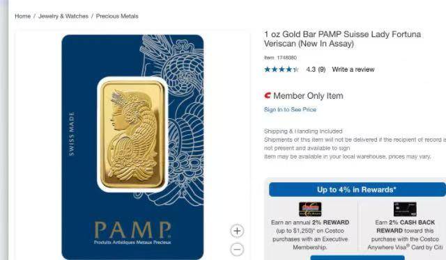 “每个会员每次交易最多购买4件,每24小时最多购买4件”,这是美国开市客(Costco )网站上对黄金产品的限购条款。